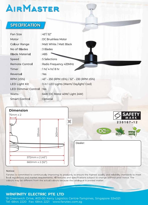 Remote Control, Timer, Variable Speed Settings, LED Light, Smart Optional